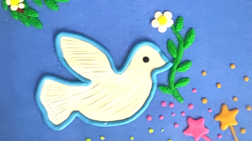 Пошаговая инструкция по фото . Поделки из пластилина, наряду с рисунками и аппликациями, помогают детям творчески осмыслить тему «День Победы». Причём работа над композицией может быть самостоятельной, а может предполагать содействие родителей, воспитателя. В любом случае, выбирая идеи для поделки, педагогу важно найти подходящие под возраст воспитанников и под уровень развития их навыков. Сегодня мы с Вами будем создавать открытку - аппликацию из пластилина на цветном картоне , где будет изображение цветущих деревьев , голубя и разноцветного салюта ...