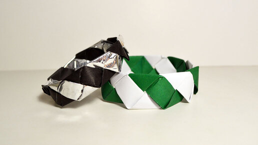 Сделать модный браслет из бумаги за пару минут? Легко! Украшения в технике "оригами" - это всегда необычно, оригинально и бюджетно! Теперь вы дизайнер! Удивите друзей - сделайте браслет своими руками! Для изготовления данного украшения нам понадобится: 2 листа бумаги разных (контрастных) цветов 40 х 6 см, скотч или липкая лента. Соедините 2 полоски бумаги вместе по короткой стороне с помощью скотча. Сложите полученную длинную ленту как показано в мастер-классе. Плетение завершите по окончанию бумаги...