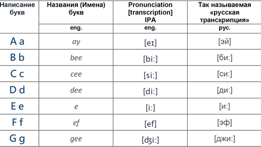 Для начала определимся с базовыми составляющими языка – буквами и звуками. Без них мы не можем двинуться дальше. Следуя ранее приведенной выше "ботанической" ассоциации, буквы и звуки (в том числе отображение звуков на письме) можно сравнить с двумя сторонами листа дерева, которые отчасти похожи, отчасти отличаются одна от другой. Итак, английский Алфавит - наш первый Справочник. Можете сохранить его где-нибудь. Английский алфавит (Имена букв) Итак, что здесь интересного? Алфавит - это перечень Имён букв...