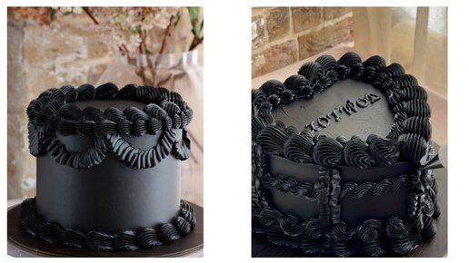 Раньше мы часто старались отговорить заказчика от чёрных тортов, поскольку такой крем жутко красил рот, превращая любой день рождения в Хэлоуин. Также, когда мы добавляли слишком много гелевого красителя, крем мог разжижиться и плохо держать форму...