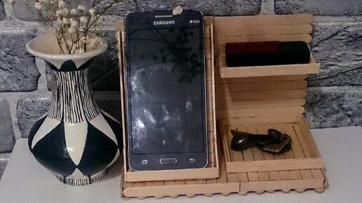 Здравствуйте дорогие подписчики и гости канала! Все мы знаем, что такое палочки для мороженого и думаю, что все знают, что они являются отличным материалом для творчества. Работать с палочками одно удовольствие, изделия из них получаются невероятно красивые, любое изделие всегда приятно держать в руках. И это действительно так! Вот такую симпатичную, удобную, универсальную подставку для телефона можно сделать из палочек для мороженого. Чтобы сделать данную подставку мне понадобилось 80 палочек и клей (сама я пользовалась горячим клеем-пистолетом)...