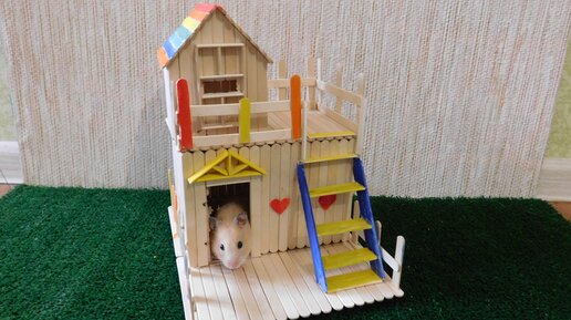 Сегодня я покажу вам как можно изготовить дом для хомяка использую палочки от мороженого и клей, краски инструменты и немного фантазии