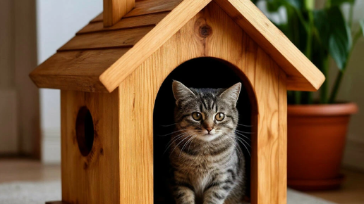Вот отличный проект — дом для кошки из дерева! Он станет её крепостью и уютным уголком. Представьте: маленький уютный домик с мягкой подстилкой, куда кошка захочет спрятаться и отдыхать. Чтобы сделать такой дом, тебе понадобится: