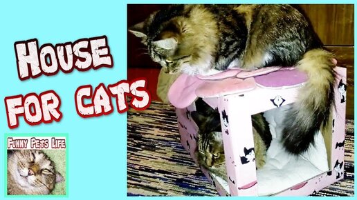 Вот красивый дом из простой коробки, которую мы сделали для наших кошек. Дом для кота получился красивым и прочным.