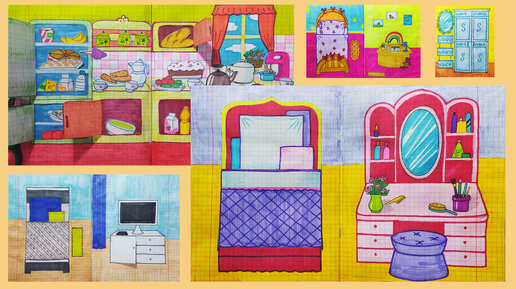 Приветствую Вас на канале ИЗОСТУДИЯ "УВЛЕЧЕНИЕ"! Предлагаю вм сделать дом из тетради в клетку, для семьи бумажных кукол: мама, папа, сын - подросток и доченька-малышка. Для этого вам понадобиться : тетрадь в клетку 24 листа (меньше брать не нужно, так как некоторые листочки нужно будет склеить), простой карандаш, ластик, цветные карандаши, фломастеры или маркеры, так же можно взять яркие текстовыделители, ножницы, резак для бумаги, линейку, клей- карандаш,скотч. В первую очередь нужно нарисовать жителей домика...