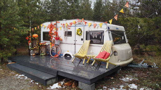 В продолжение темы необычных гостевых домиков хочу рассказать ещё об одном - домике на колёсах. Как обычно, наткнулась на него в интернете совершенно случайно и впечатлилась этой идеей. Домик-фургончик поставлен на большой закрытой территории, прямо на опушке леса. Территория украшена и продумана до мелочей. Для любителей фотосессий здесь множество фотозон. Причем, они соответствуют времени года. Я побывала здесь осенью, застала ещё осеннюю тему, а буквально через пару недель здесь уже совсем...