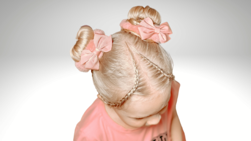С помощью резинок делаем сзади два хвоста, предварительно оставив в передней части небольшое количество волос для косичек.