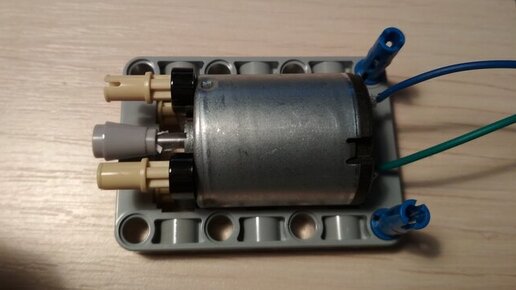 Собирал я как-то с ребенком набор Lego из серии Technik. Это лучший, на мой взгляд, конструктор по нескольким причинам: В общем машинку мы собрали, ребенок был очень доволен. Через некоторое время на работе я наткнулся на вот такой электромоторчик: Я проверил его работоспособность при помощи обычной пальчиковой батарейки, приложив два контакта к разным полюсам источника энергии (полярность тут совершенно не важна, можно прикладывать любой провод как к плюсу, так и к минусу; потому-что электродвигатель может одинаково хорошо крутиться в обе стороны)...