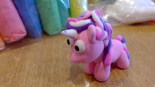 Всем привет, и сегодня снова поделка из лёгкого пластилина. Дело в том, что мы с дочкой просто обожаем этот материал и поэтому делимся прикольной единорожкой.