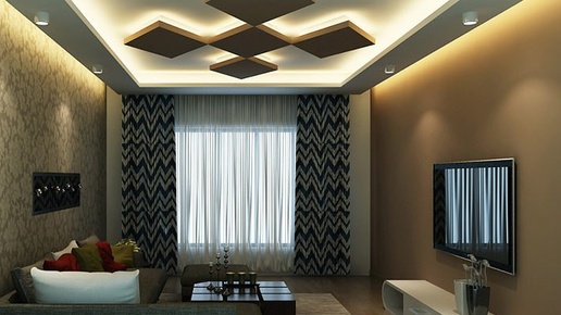 Фигурный потолок из гипсокартона в гостиной: особенности, виды, монтаж
