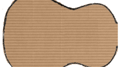 6 этап. Нижняя дека. Вырезаем по шаблону вот такую деталь и приклеиваем её к обечайке используя клей и булавки. 7 этап. Накладка грифа, порожки и лады. Конечно, можно всё это просто нарисовать маркером и успокоиться, но мы же не ищем лёгких путей! Берём шаблон и отрезаем от него гриф. По получившемуся шаблону 2.0 вырезаем две заготовки из плотного картона и склеиваем их. Примечание: Если вы используете клей ПВА, то не забудьте прижать склейки чем-нибудь тяжёлым, иначе накладка грифа примет ту форму, какая ей больше нравится...