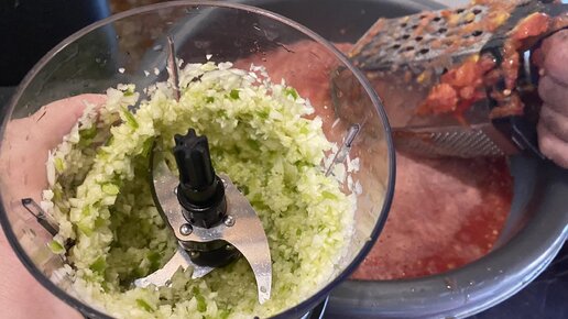 Чеснок почистить, добавить к измельчённому хрену и ещё раз прокрутить на кухонном комбайне, чтобы чеснок и хрен хорошо перемешались...