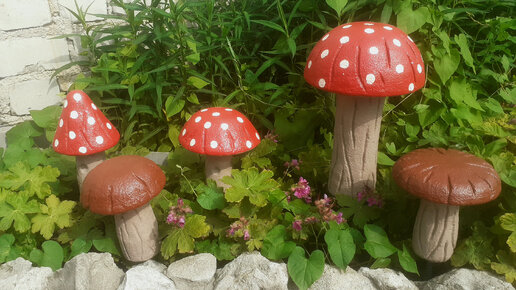 Садовые фигурки. Грибы из цемента, мой вариант изготовления.