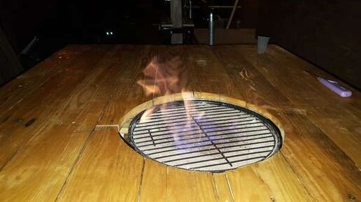 Как вам идея сделать стол с грилем своими руками? На первый взгляд кажется не реалистично, хотя мысль хорошая, в плане удобства.
