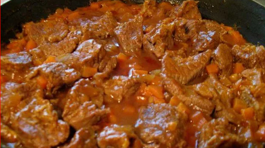 Гуляш из свинины с подливкой. Нежное мясо на сковороде быстро и вкусно