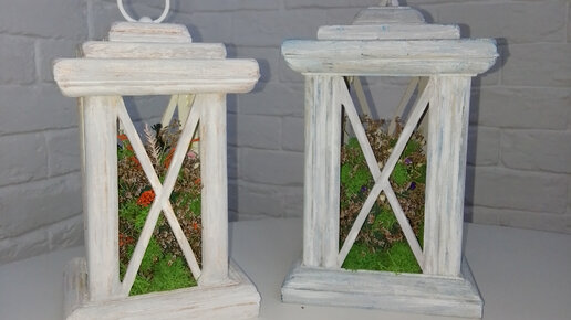 Добрый день! Сегодня пошагово расскажу, как своими руками сделать вот такой красивый интерьерный фонарь. И так.. Сначала нам нужно подготовить детали, использовать можно любые рейки и планки, которые вам нравятся. Количество планок и размеры того, что использовала я: Склеиваем между собой 8 угловых планок (по 18 см) , получаем 4 шт . Далее скливаем планки длиной 15 см по 5 шт, получаем 2 основы для дна и крыши. Приклеиваем к ним планки под углом 45°. Склеваем между собой короткие планки по 5 см, чтобы поучился квадрат...