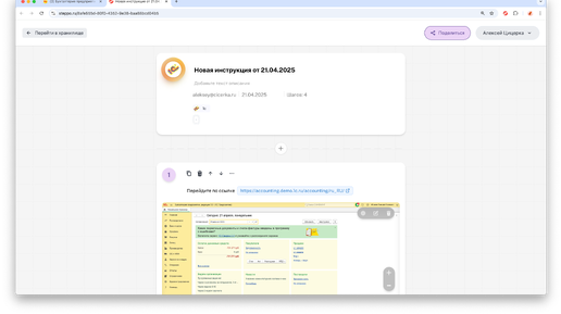 Если вы хоть раз пытались создать инструкцию для работы в 1С, то знаете эту боль: В обоих случаях вы тратите время, деньги и нервы. Но есть способ гораздо проще. Используем Steppo — российский сервис, который автоматически записывает действия пользователя и превращает их в готовую пошаговую инструкцию. Что нужно делать: 1. Открываете 1С и запускаете запись через расширение Steppo в браузере...