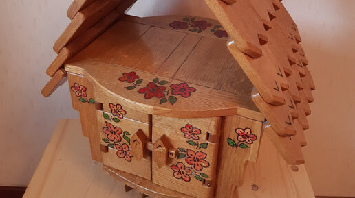 Начинаем тему поделок для дома, сегодня представляем нашу избушку из дуба высотой 62 см, длинной 46 см и шириной 31 см. Поворачивается на 360 градусов, открываются дверцы спереди, а сзади открывается полочка. Рисунки по контуру сделаны выжигательным аппаратом и заполнены акриловыми красками. Все делали нами вручную. Она была сделана ранее и проклеена, поэтому мы не будем отдельной описывать каждый элемент и этапы создания, как обычно, а сделаем обзор с фотками и размерами. Материалы Крепление Описание...