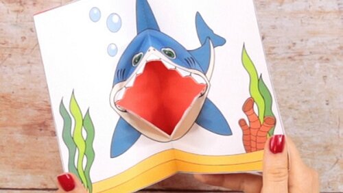 Эта акула готова покусать! Шаблон поможет сделать 3D акулу из бумаги вместе с детьми. Это так просто! Распечатайте шаблон (доступны несколько размеров как в полноцветном, так и в черно-белом варианте), раскрасьте, если вы распечатали черно-белую версию, и обрежьте карту. Также вырежьте из красной плотной бумаги прямоугольник того же размера, что и открытка...