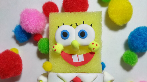 Всем привет, сегодня мы смастерили весёлого Губку Боба, для этого нам потребуется: * Губка для мытья посуды * Клеевой пистолет * Воздушный пластилин * Коричневый фетр * Клей ПВА * Красная и белая бумага * Стека Ну что же начнём!Для начала отделим арбазивную часть губки(если она есть) но очень осторожно. Теперь скатаем два белых шарика из воздушного пластилина. Теперь сплющим их(это будут глаза). Пока положим их на губку нам так легче будет лепить лицо. Затем слепим два маленьких голубых шарика. Сплющим их...