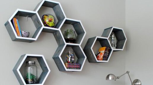 Нравятся полочки из дизайнерского блога? Предлагаю сделать их своими руками. Не умеете? Да тут и полному новичку работы-то на один вечер! Сейчас все расскажу. Чтобы сделать полку самому, понадобятся: А также: Для покраски рекомендуею использовать: Делаем настенную полку своими руками Раз! Чтобы прикинуть, сколько полок и какой конфигурации вы хотите получить, возьмите лист тетради и набросайте желаемый дизайн. Пусть это будут разбросанные по стене отдельные шестигранники, или собранные в группы — вам решать...