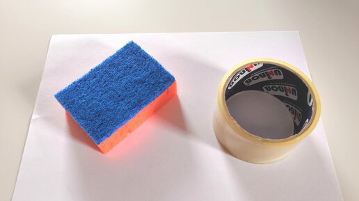 Подружки дочки теперь просят меня смастерить им такие же игрушки. Делать игрушки девчёнкам не буду, но мастер-класс обязательно преподам. Тем более в "производстве" этих милых игрушек нет ничего сложного. Немного терпения и творческой жилки и всё непременно получится. Решила поделиться и здесь-в блоге "Я расту!", мини мастер-классом и рассказать, как мы с дочкой делаем милые игрушки с помощью простых привычных вещей, которые есть в доме у каждого-губки для мытья посуды, скотча и бумаги. 1. Итак, берём чистую сухую губку, скотч и обычный лист бумаги...