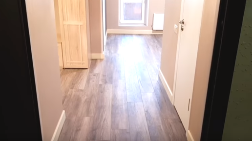 Квартира 33 кв. м. в панельном пятиэтажном доме, такой ремонт был сделан за 6 недель, затрачено на материал около 330 тыс. руб. + работа в моем регионе примерно 200 тыс. руб. в других возможно дороже. Сначала был выполнен демонтаж деревянных полов, дверей, затем объединили коридор, кухню и гостиную.
