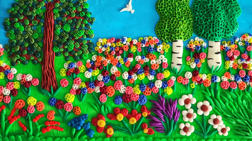 Аппликация из пластилина "Цветочное лето в лесу ". Пошаговая инструкция с фото для детей.