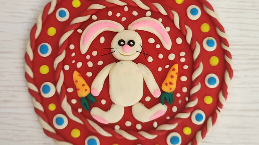 Поделка из пластилина своими руками! Новогодняя ёлочная игрушка на картоне" Зайчик". Пошаговая инструкция с фото для детей.