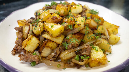 Рецепт сегодняшнего блюда особенно заценят любители жареной картошечки. Блюдо готовится очень просто и с ним справится даже тот, кто вообще никогда не готовил. Приготовьте по нашему рецепту жареную картошку с мясом и порадуйте свою семью простым и очень вкусным ужином. Ингредиенты: Приготовление: Картофель нарезаем средними кубиками и жарим на сильном огне, добавив растительное масло. Лук нарезаем тонкими перышками и обжариваем на второй сковороде вместе с говяжьим фаршем, также, добавив растительное масло...