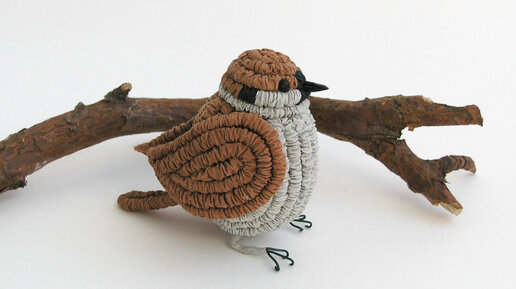 Воробей из гофротрубочек
