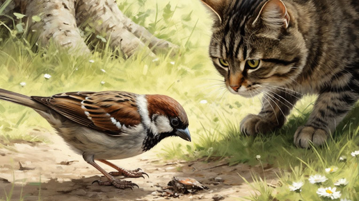 Воробей Счастливчик с кривым клювиком