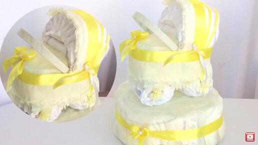 Коляска из подгузников. Красивый, оригинальный подарок на выписку из роддома или на день рождения малыша. Такой подарок будет всегда к стати, ведь подгузники самые необходимые малышу в первый год жизни...