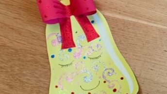 Это одна из моих любимых первосентябрьских открыток, получившихся в этом году. Он самый веселый и желтый (мой любимый цвет). Для начала нам нужен шаблон - рисуем или распечатываем силуэт колокольчика. Вырезаем из желтого картона по шаблону основу колокольчика. Из более светлой бумаги вырезаем и приклеиваем блик, повторяющий форму колокольчика Теперь делаем обьемный бантик из красной бумаги - делаем две детальки, более широкие к центру и сужающиеся по краям...