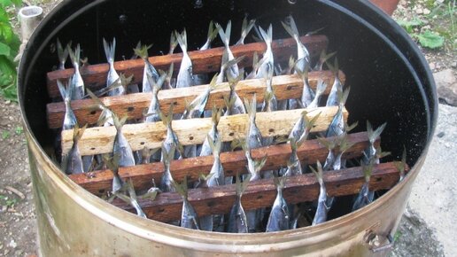 Расскажем, чем они различаются, как сделать коптильню самому и как коптить горячим способом в домашних условиях по нашим рецептам вместе с мастером Аркадием Бораловым и поваром Ириной Гришиной. Самодельные коптильни по устройству аналогичны покупным. Импровизированную коптильню можно сделать из подручных материалов — железной бочки, старого холодильника, бака от активаторной стиральной машины и т. п. Расскажем, как сделать коптильню из металлического ведра, газовой плиты и листового металла. На дно ведра насыпьте щепу для копчения...
