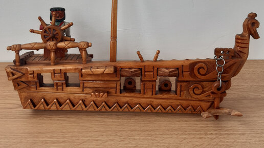 Продолжаем тему поделок для дома, сегодня представляем корабль из дерева, сделан нами для украшения дома, вешается на стену, интересен детям, как игрушка. Высота 45 см, длина 50 см и ширина 12 см. Все сделано вручную. Капитан и штурвал. Материалы Крепление Описание Корпус делаем из дубовых реек, вырезаем на них узоры. Делаем лесенку. Делаем вращающийся штурвал. Вырезаем капитана, руки и голова вращаются...