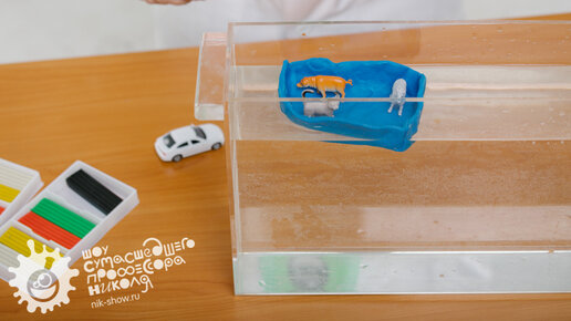 Плавающий пластилин Не знаю как ты, а я вот очень люблю море, а еще мне нравится плавать на корабликах: волны, ветер, брызги – красота! Но вот что интересно: ведь корабль такой тяжелый, а почему же он тогда не тонет? Давай разбираться. Нам потребуется: - глубокая прозрачная миска (можно взять тазик или кастрюлю); - большой кусок пластилина; - фигурки пассажиров (или какой-нибудь груз для корабля). Что делаем: - для начала убедимся, что пластилин сам по себе не плавает. Возьмем кусок, слепим из него...
