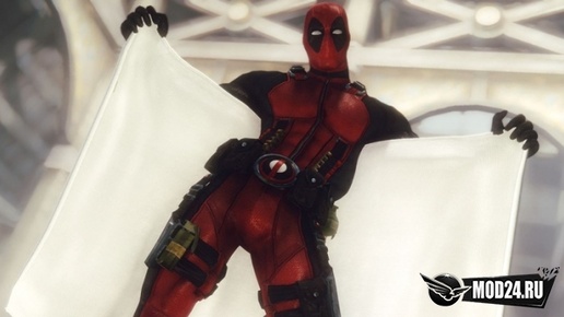 Супер-геройский костюм Дэдпула, выполнен довольно качественно, чтобы он появился в игре воспользуйтесь консолью или AddItemMenu. Источник: https://mod24.ru/mody-skyrim/bronja_i_odezhda/811-kostyum-dedpula...