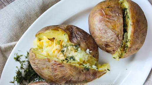 Многие из вас наверняка знают такое блюдо, как крошка-картошка — картофель (крупный) запекают в фольге, а потом разрезают и разминают с маслом. Подают со всевозможными начинками.