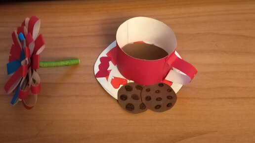 Дети часто любят устраивать куклам чаепитие. А угощать кукол из посуды, сделанной своими руками, вдвойне приятно. Поделка нетрудная, поэтому справится даже малыш. Вырежем из бумаги кружок. Это будет основа тарелочки. Теперь вырезаем кружок поменьше из белого цвета, рисуем или вырезаем дырочки - это будет салфетка. Склеиваем две части. Теперь делаем кружку - берем полску бумаги, склеиваем в круг, приклеиваемк тарелочке...