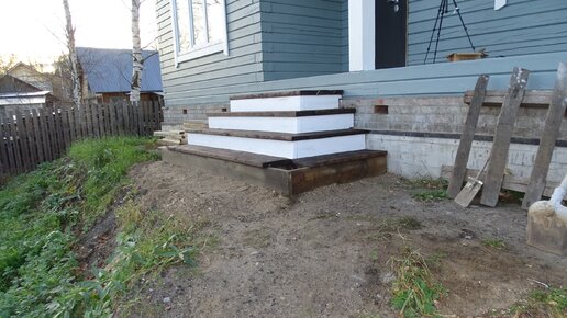 Всем привет!!! С вами Дмитрий, канал Gudmig//Свой дом. Т.к. решили нынче переезжать в свой дом, то необходимо сделать крыльцо! Т.к. по времянке которую я делал на время строительства дома ходить не безопасно, тем более маленьким детям! Поэтому сейчас из обрезков досок буду придумывать какое то крыльцо, для меня задача, чтобы оно было максимально бюджетно, но в тот же момент безопасно и удобно! Для начала нужно немного выровнять грунт на месте установки крыльца. Для этого использую ПГС. Далее приступаем к изготовлению каркаса, для этого использую остатки доски 50*200...