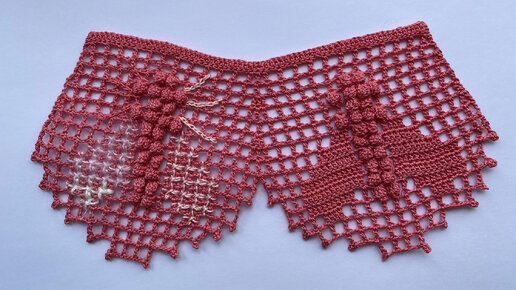 Показываю процесс — как из смутной идеи получается готовая работа. Дано Что из этого получается Чтобы попробовать узор и технику, связала образец — 2 сегмента воротничка: Я думала, что пышные нитки создадут приятный объем, но результат не понравился — тяжеловесно. Хочется все же воздушной легкости. Сняла эту вышивку, попробовала другой шов. На этот раз воздушнопетельный. Левое крыло вышито 2 видами пряжи: Лапки вывязала крючком нитками Vita cotton Pelikan. В целом результат по крыльям меня утроил...