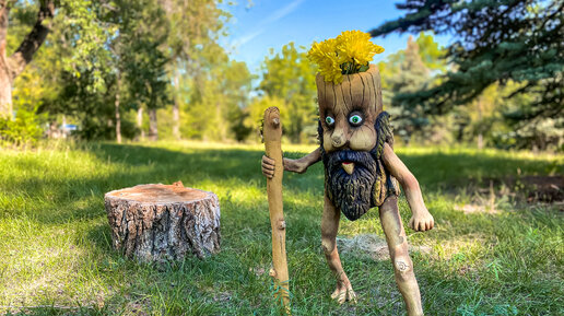 Из пластиковой трубы и цемента сделали ну очень симпатичного лешего !