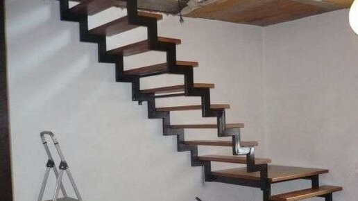 Из всех дизайнов лестницы я точно знал какую мне нужно — это была железная лестница на двух ломаных косоурах (правильное название я потом выучил, когда её сделал). Выглядит она вот так