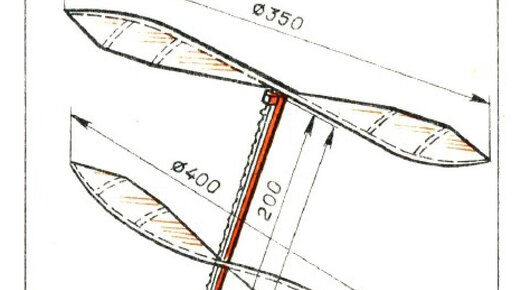 Как сделать летающую модель вертолета "Стрекоза" Изготовление модели (рис. 7.16) начнем с рейки фюзеляжа. Сначала выстругаем рейку длиной 400 мм и сечением 3X3 мм. К одному ее концу прикрепим с помощью ниток и клея подшипник (сосновый брусочек) длиной 8 мм и сечением 3 X X 6 мм для верхнего пропеллера-ротора. Второй конец рейки, начиная с середины, состругаем на конус, сечение которого на самом конце 1 X 1 мм. Крючок для резинового двигателя изогнем ид стальной проволоки диаметром 0,8 мм и прикрепим его к середине рейки...