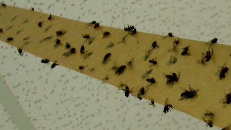 Чтобы сделать липкую ленту, которая служила бы хорошей приманкой и ловушкой для мух, следует взять бумажную ленту и покрыть её липкой массой.