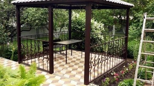 Для изготовления металлической беседки из металла понадобится: металлическая сетка; профнастил оцинкованный или с полимерным покрытием; арматура; гвозди; шурупы; саморезы. Самыми популярными материалами для изготовления беседок из металла являются оцинкованная или гладкая оцинкованная сетка, а также профнастила. Металлическая сетокна может быть оцинкованной, поэтому она отличается долговечностью. Чаще всего ее используют для изготовления каркаса беседки. Из оцинкованной сетки можно также изготовить решетку, это поможет защитить территорию от проникновения животных...