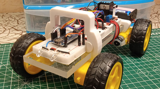 В какой-то момент мне захотелось сделать свою собственную машинку на радио управлении! Для начала решил сделать всё максимально просто: макетная плата, 4 Колеса с моторами, ардуина, радио модуль NRF24L01 + PA + LNA, ну и драйвер. Нашел какой-то кусок орг стекла, который будет служить нам как основная рама, а на 3д принтере напечатал что-то вроде контурных хомутов. Далее все это дело скрутил и стянул друг с другом...
