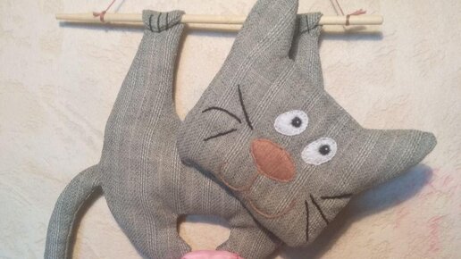 Как сделать забавного текстильного котика для малыша, пошагово с фото