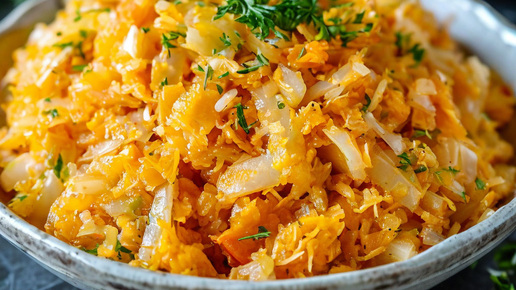 Начинка из капусты для пирожков – это классический и очень вкусный вариант начинки, который идеально подойдет для пирожков, пирогов, кулебяк и других видов выпечки! Эта начинка получается сочной, ароматной и очень сытной. Топленое масло придает начинке особый вкус и аромат, а томатная паста – приятную кислинку и красивый цвет. Начнем с подготовки овощей. Капусту белокочанную (1 кг) тонко нашинкуйте. Лук репчатый (270 г) очистите и мелко нарежьте. В большой сковороде или казане растопите топленое масло (30 г) на среднем огне...